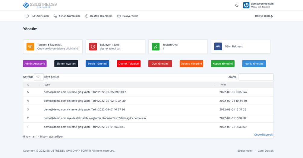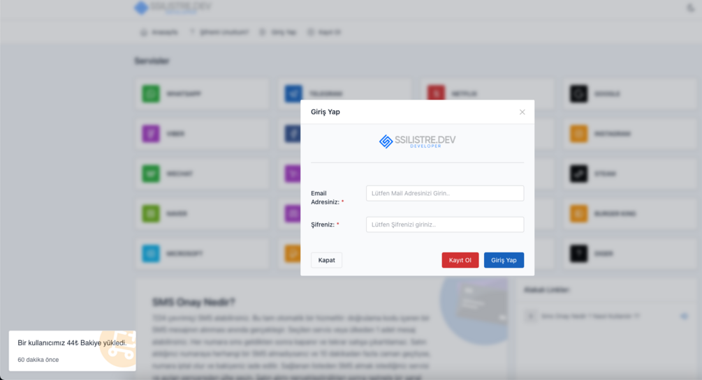 SSilistre.dev SMS Onay Scripti Pasif Gelir